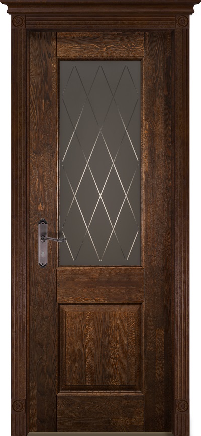 Дверь Ока массив дуба цельные ламели Классик №2 античный орех, стекло каленое с узором