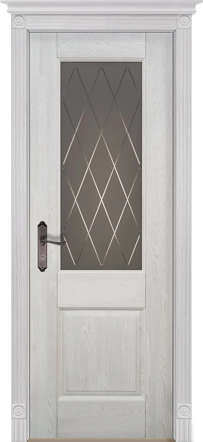 Дверь Ока массив дуба цельные ламели Классик №2 эмаль белая, стекло каленое с узором