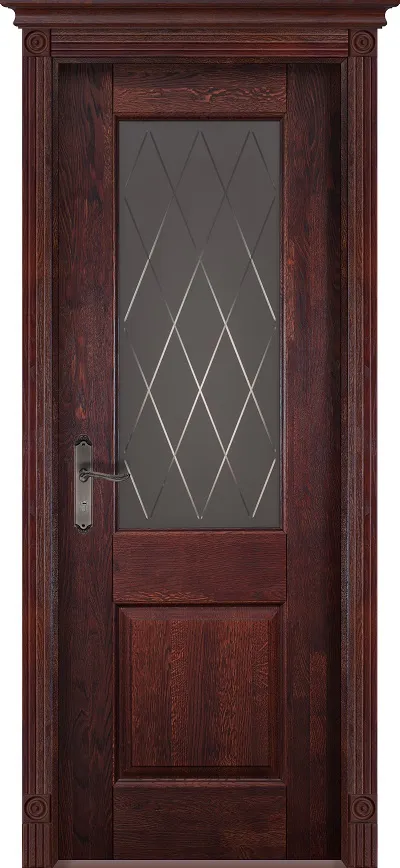Дверь Ока массив дуба цельные ламели Классик №2 махагон, стекло каленое с узором