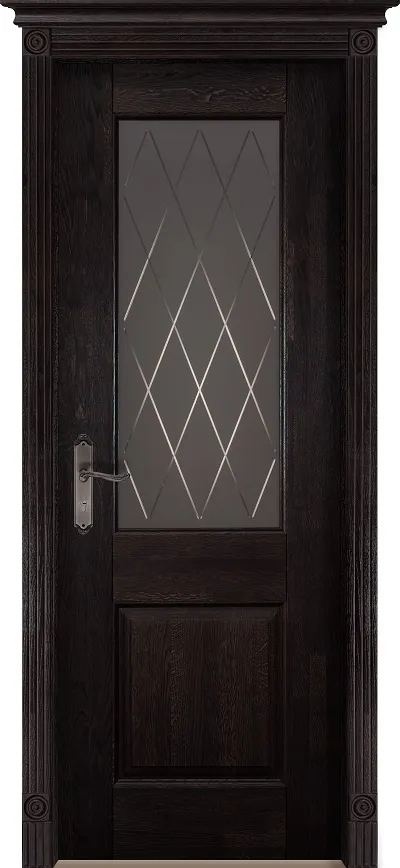 Дверь Ока массив дуба цельные ламели Классик №2 венге, стекло каленое с узором