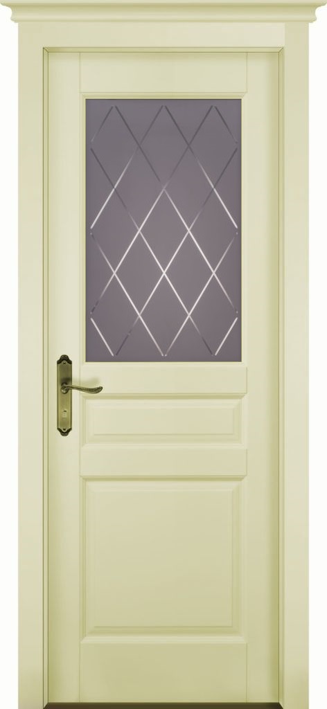 Дверь ДР массив ольхи Гармония эмаль слоновая кость, стекло