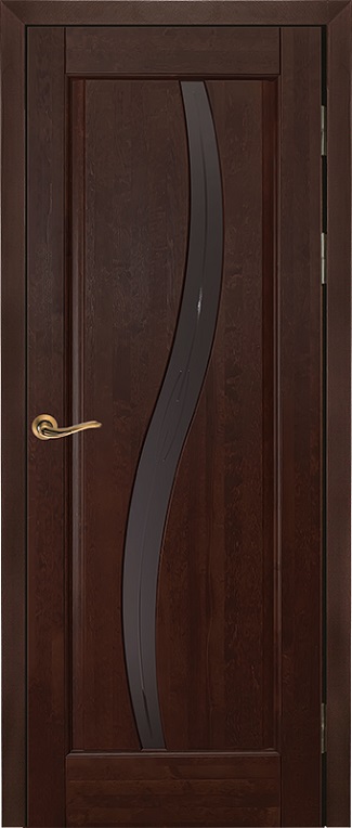 Дверь ОКА массив ольхи Соло махагон, стекло графит с фрезеровкой