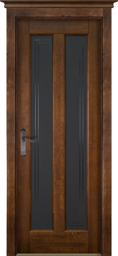 Дверь ОКА массив ольхи Сорренто античный орех, стекло графит с фрезеровкой