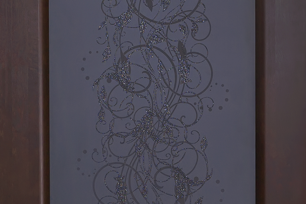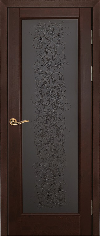 Дверь ОКА массив ольхи Витраж махагон, стекло графит закаленное с наплавом