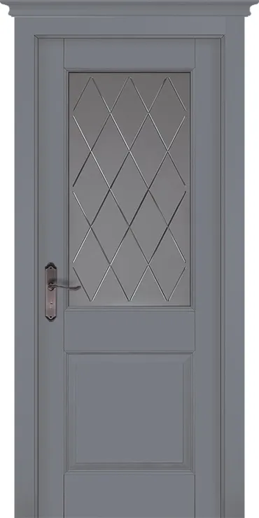 Дверь ОКА массив ольхи Элегия эмаль грей, стекло Графит с фрезеровкой