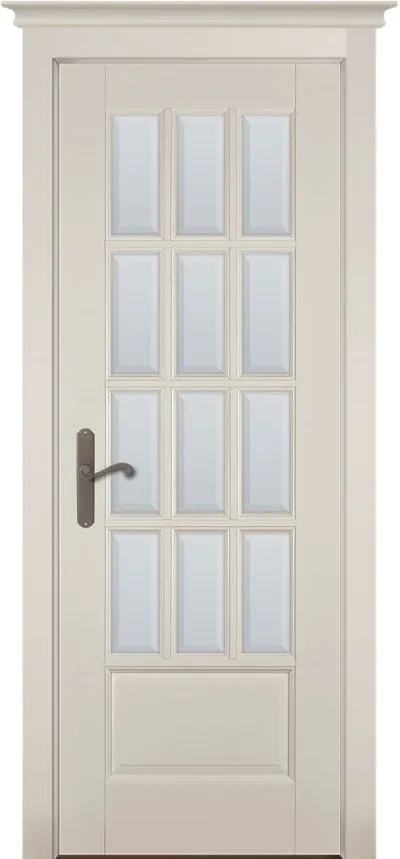 Дверь ОКА массив ольхи Лондон №1 эмаль слоновая кость, стекло матовое осветленное с фацетом