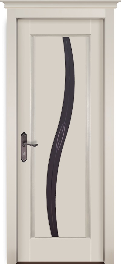 Дверь ОКА массив ольхи Соло эмаль слоновая кость, стекло графит с фрезеровкой