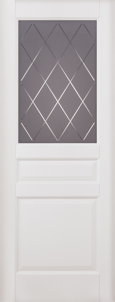 Дверь ОКА массив ольхи Валенсия эмаль белая, стекло графит с фрезеровкой