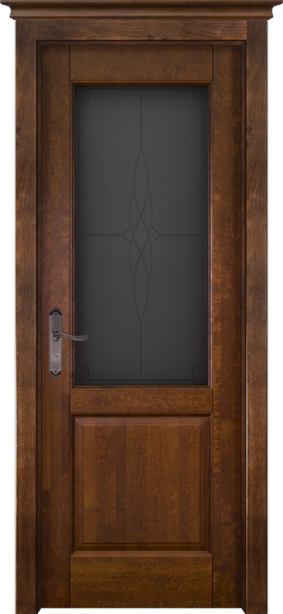Дверь ДР массив ольхи Европа античный орех, стекло Селена мателюкс с гравировкой