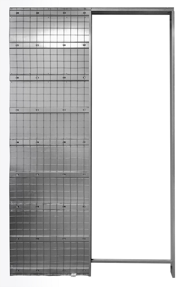 Конструкция пенала изготавливается из стального оцинкованного усиленного профиля, встраивается внутрь стены, предназначена под оштукатуривание. В комплектацию входит сам пенал, направляющая для раздвижной двери и роликовый механизм.