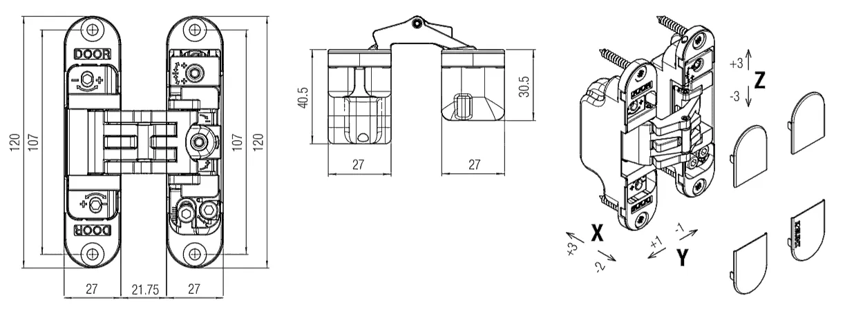 Петля скрытая универсальная К2700 DXSX с 3D регулировкой, черная