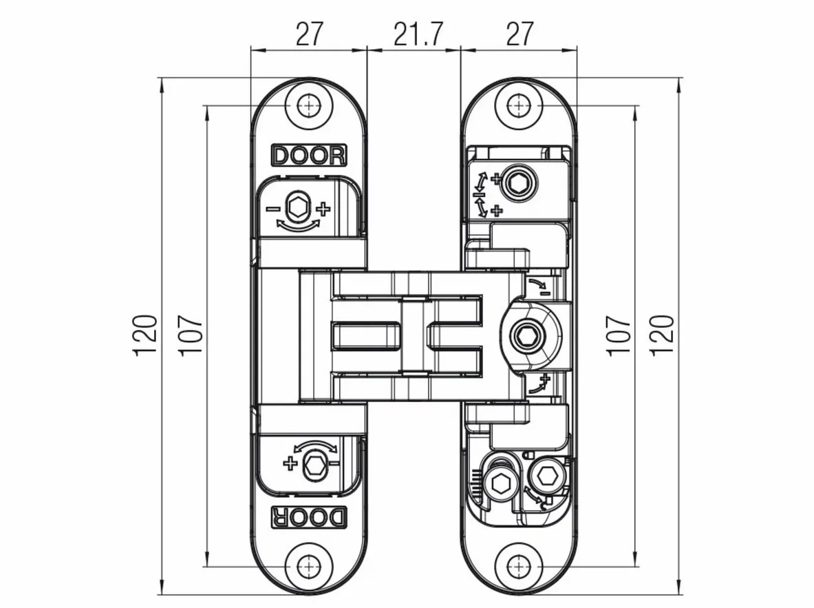 Размеры: высота 120 мм, межосевое расстояние 107 мм, ширина 27 мм, глубина врезки 30,5 мм и 40,5 мм
