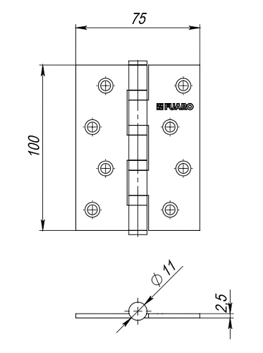 Петля универсальная Fuaro 4BB 100x75x2,5 бронза