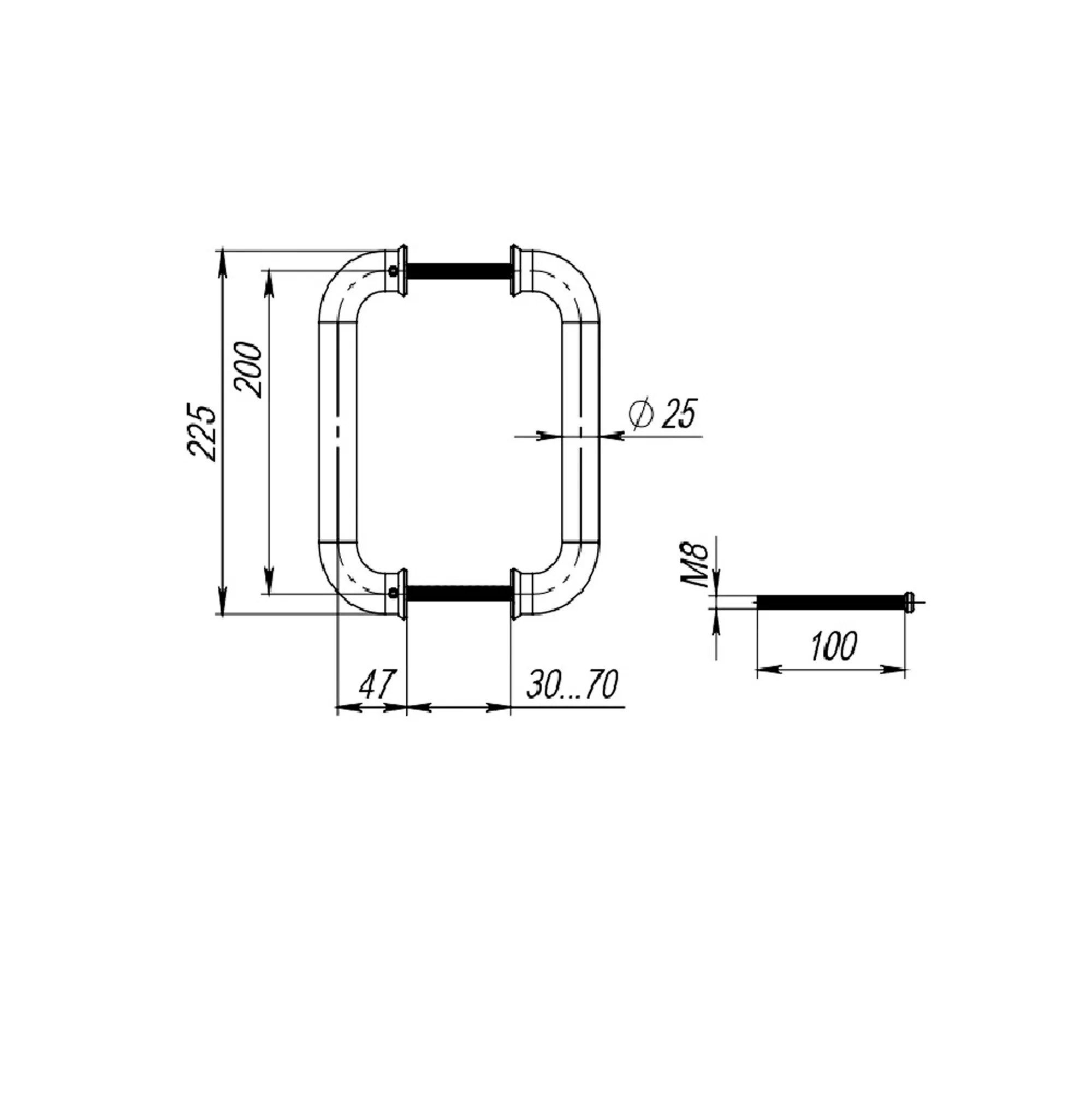 Изготовлена из высококачественной нержавеющей стали марки AISI 201 (INOX 201). Это обеспечивает превосходную устойчивость к коррозии, воздействию влаги и перепадам температур, что делает ручку идеальной для использования как внутри помещений, так и на улице.