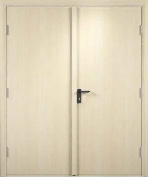 Фурнитура: Противопожарный замок под цилиндр с ключом; петли дверные (100 мм) с отделяемой картой для полотна; ручки противопожарные
