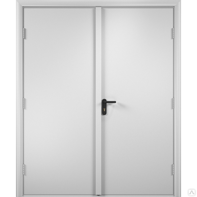 Фурнитура: Противопожарный замок под цилиндр с ключом; петли дверные (100 мм) с отделяемой картой для полотна; ручки противопожарные
