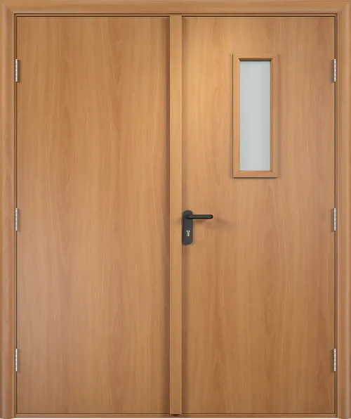 Фурнитура: Противопожарный замок под цилиндр с ключом; петли дверные (100 мм) с отделяемой картой для полотна; ручки противопожарные