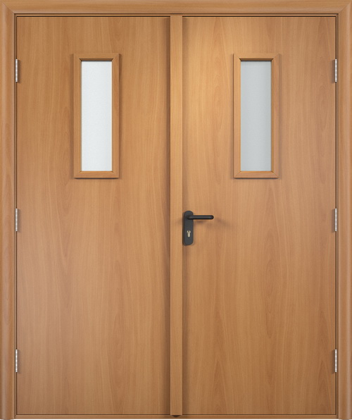Фурнитура: Противопожарный замок под цилиндр с ключом; петли дверные (100 мм) с отделяемой картой для полотна; ручки противопожарные