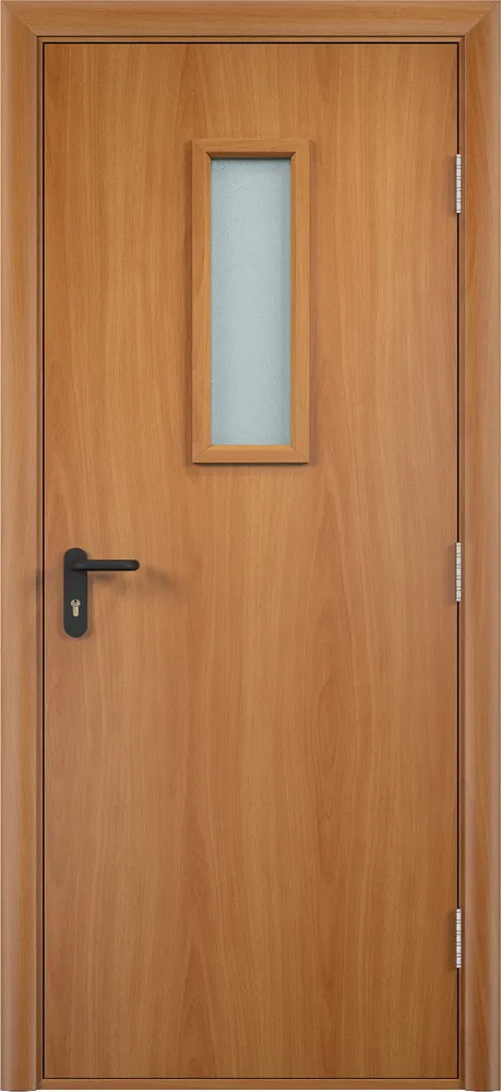 Фурнитура: Противопожарный замок под цилиндр с ключом; петли дверные (100 мм) с отделяемой картой для полотна; ручки противопожарные