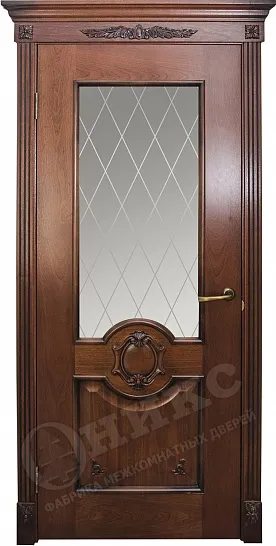 Дверь Оникс Рада красное дерево с черной патиной, сатинат гравировка Ромбы