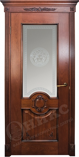 Дверь Оникс Рада красное дерево с черной патиной, сатинат художественный Голова