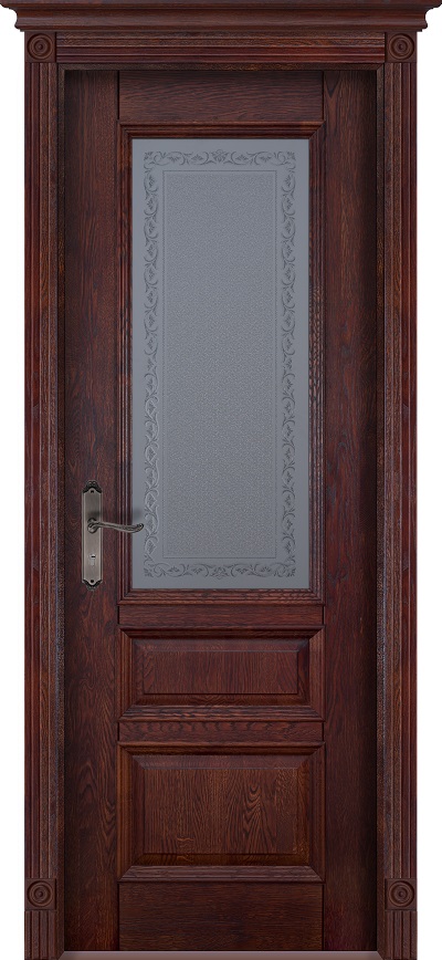 Дверь Ока массив дуба DSW сращенные ламели Аристократ №2 махагон, стекло каленое с узором
