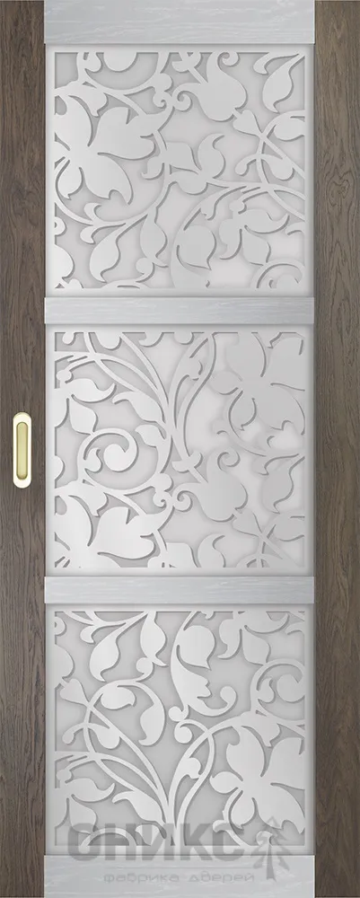 Перегородка Оникс №2 дуб античный/серебро/Р-№6, сатинат белый