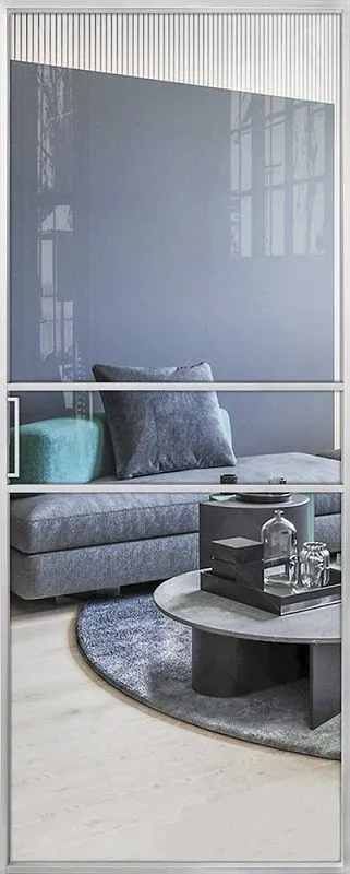 Раздвижная перегородка ALUM №2 хром, стекло прозрачное.