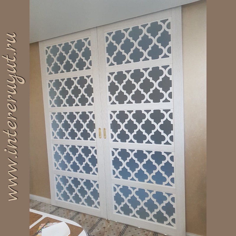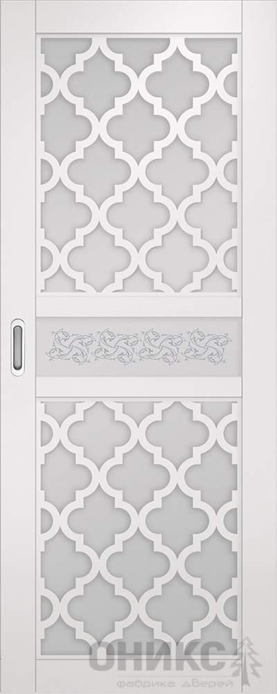 Раздвижная Перегородка Оникс №1 эмаль белая, решетка декоративная №5, сатинат белый.