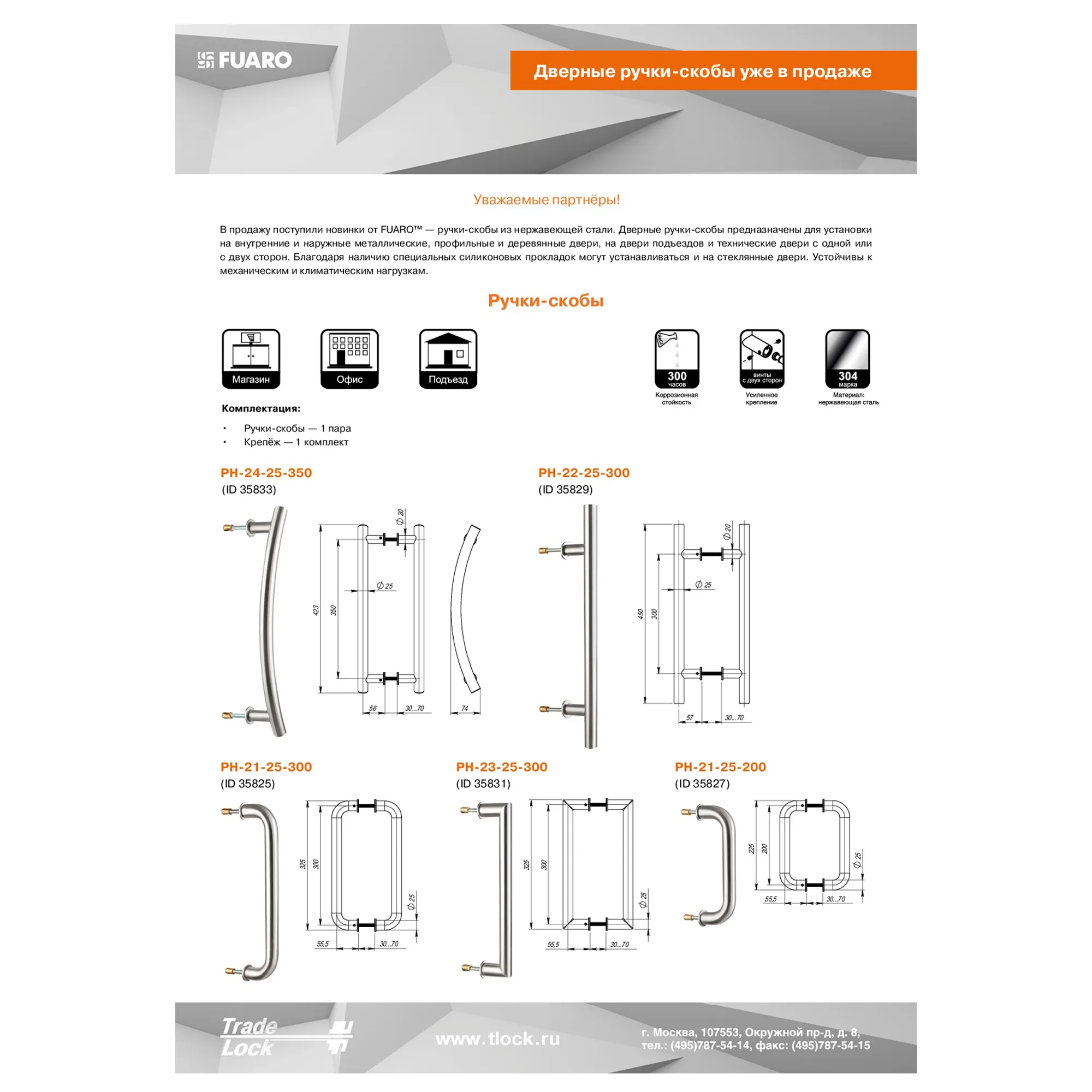 Ручка-скоба Fuaro PULL.PH25/300.23 INOX 304 – это надежная и стильная фурнитура, предназначенная для установки на двери, ворота или другие конструкции, где требуется удобный и прочный захват.
