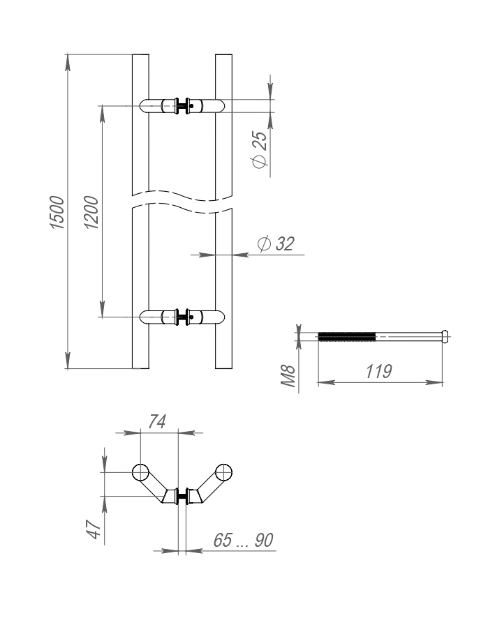 Изготовлена из высококачественной нержавеющей стали марки AISI 304 (INOX 304). Это обеспечивает превосходную устойчивость к коррозии, воздействию влаги и перепадам температур, что делает ручку идеальной для использования как внутри помещений, так и на улице.