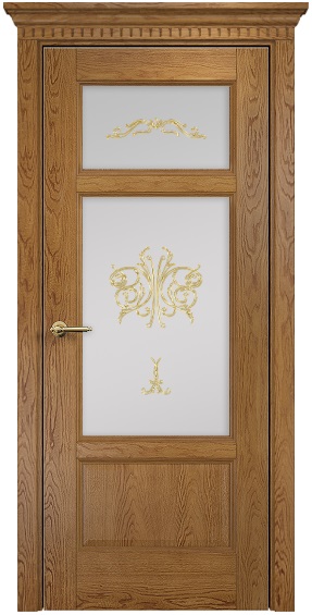 Дверь Оникс Италия 4 дуб золотистый, сатинат белый контурный витраж золото №2