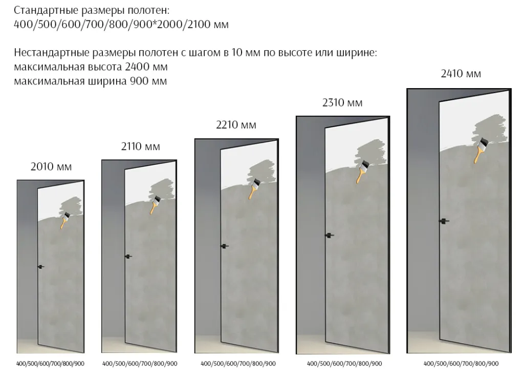 от 810 до 900*2120/2310 мм с шагом 10 мм - наценка 20%