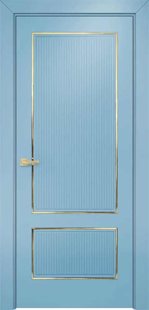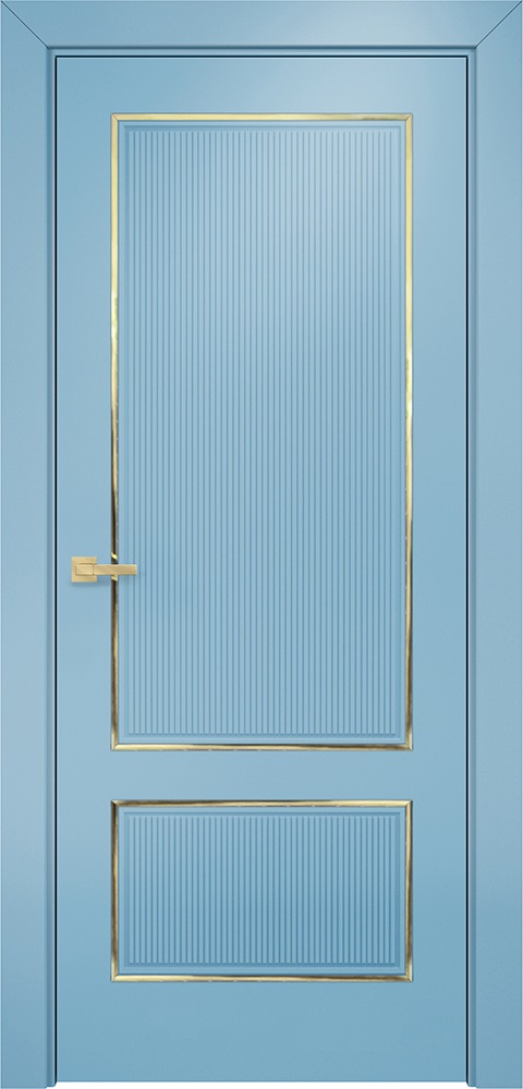 Дверь Оникс Сиэтл 2 эмаль голубая молдинг золото, глухая