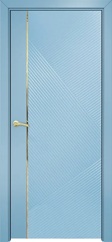 Дверь Оникс Нова эмаль голубая молдинг золото, глухая