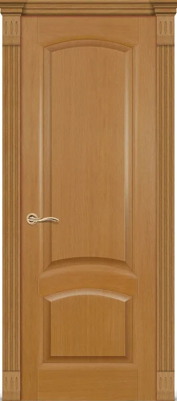 Сборная филенчатая дверь, обвязка дверного полотна изготовлена из срощенного массива бессучковой сосны.