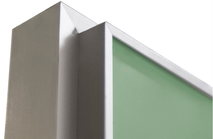 Полотно полностью подготовлено под покраску, надежное грунтовое покрытие идеально плоское и не имеет эффекта шагрени, мелких раковин, торцы полотна по периметру дополнительно оснащены защитной алюминиевой кромкой..