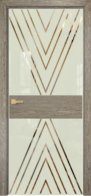 Дверь Оникс Соло 2 акация, глухая, Lacobel RAL 1015 Ромбы зеркало