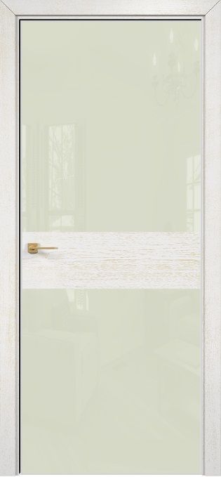 Дверь Оникс Соло 2 эмаль белая патина золото, глухая, Lacobel RAL 1013