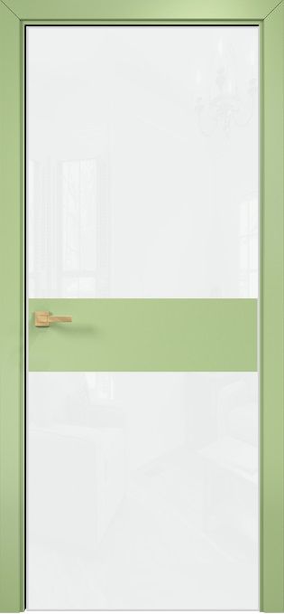 Дверь Оникс Соло 2 эмаль фисташковая, глухая, Lacobel RAL 0333