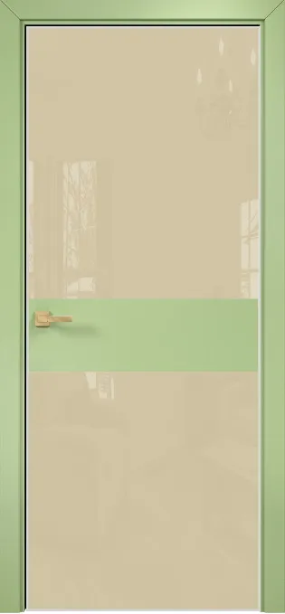 Дверь Оникс Соло 2 эмаль фисташковая, глухая, Lacobel RAL 1015