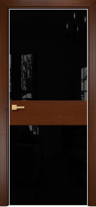 Дверь Оникс Соло 2 красное дерево, глухая, Lacobel RAL 1015