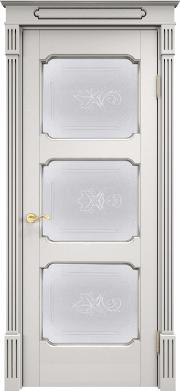 Дверь ПМЦ массив ольхи ОЛ7.3 белый грунт с патиной серебро, стекло мателюкс