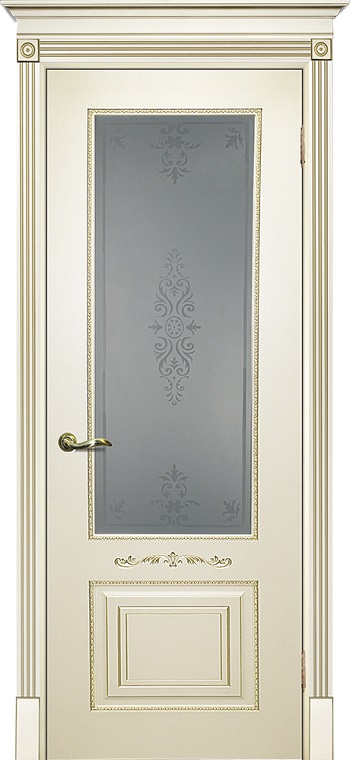 Дверь Текона эмаль Smalta 04 слоновая кость RAL 1013 патина золото, остекленная