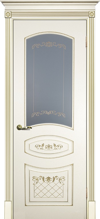 Дверь Текона эмаль Smalta 05 слоновая кость RAL 1013 патина золото, остекленная