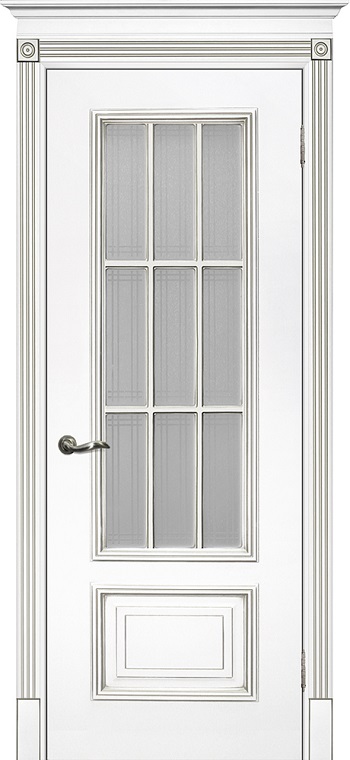 Дверь Текона эмаль Smalta 08 белый RAL 9003 патина серебро, остекленная
