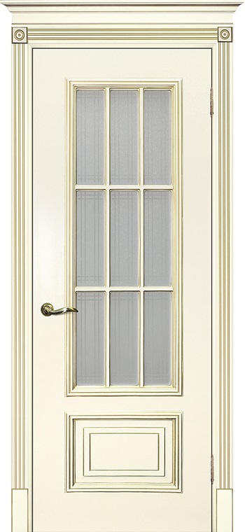 Дверь Текона эмаль Smalta 08 слоновая кость RAL 1013 патина золото, остекленная