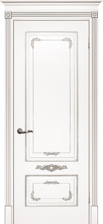 Дверь Текона эмаль Smalta 09 белый RAL 9003 патина серебро, глухая