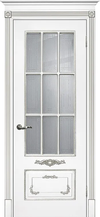Дверь Текона эмаль Smalta 09 белый RAL 9003 патина серебро, остекленная