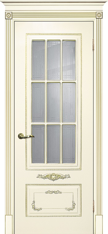 Дверь Текона эмаль Smalta 09 слоновая кость RAL 1013 патина золото, остекленная